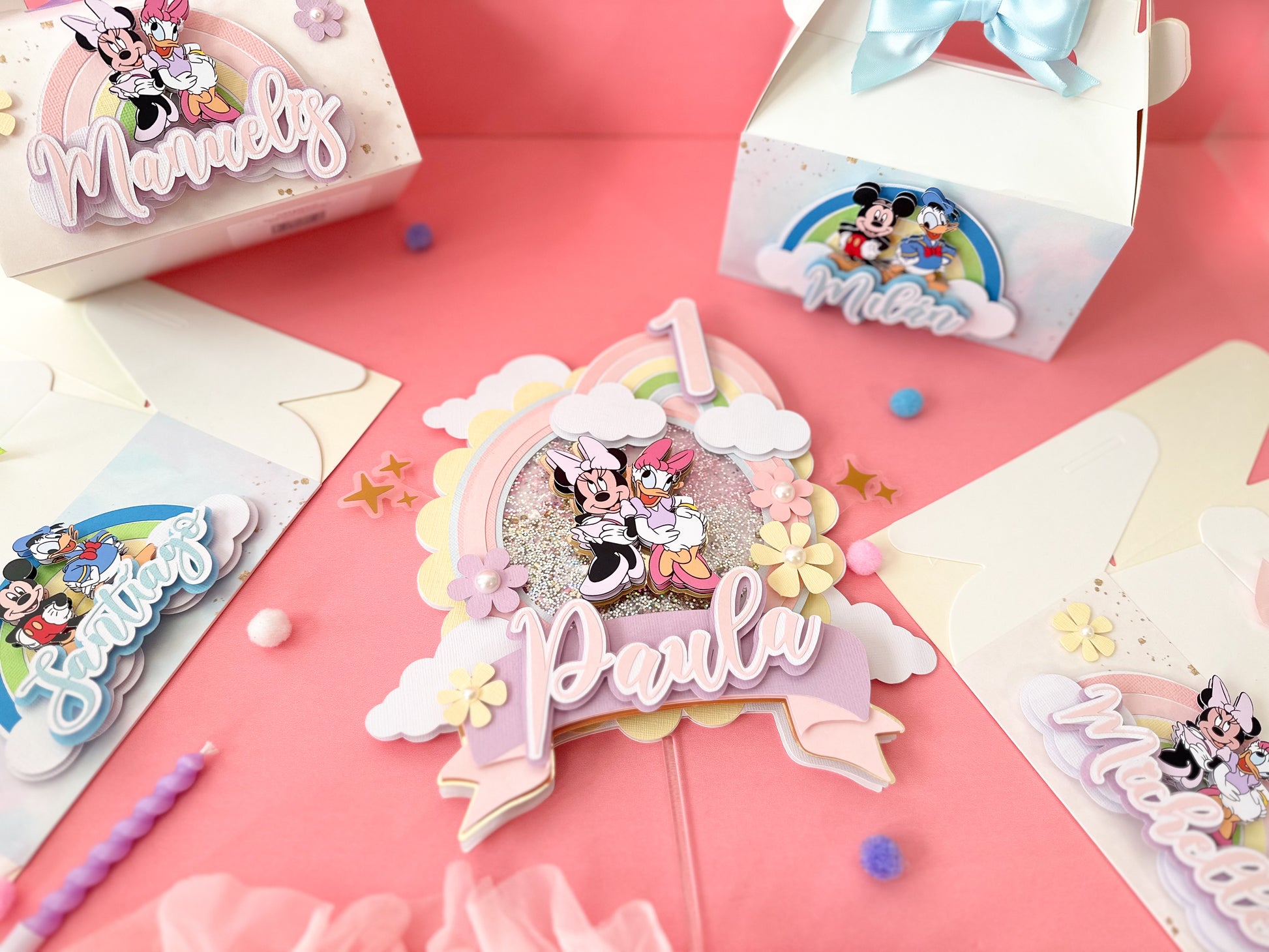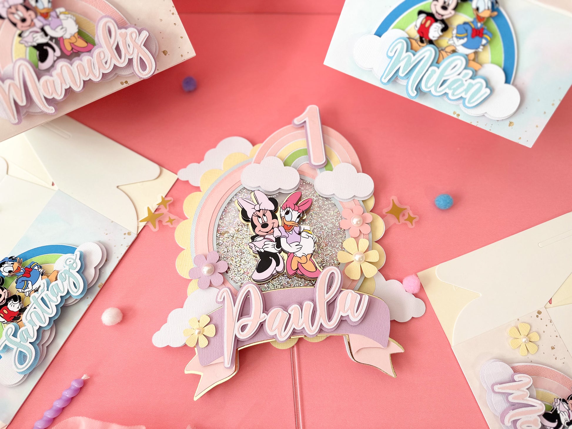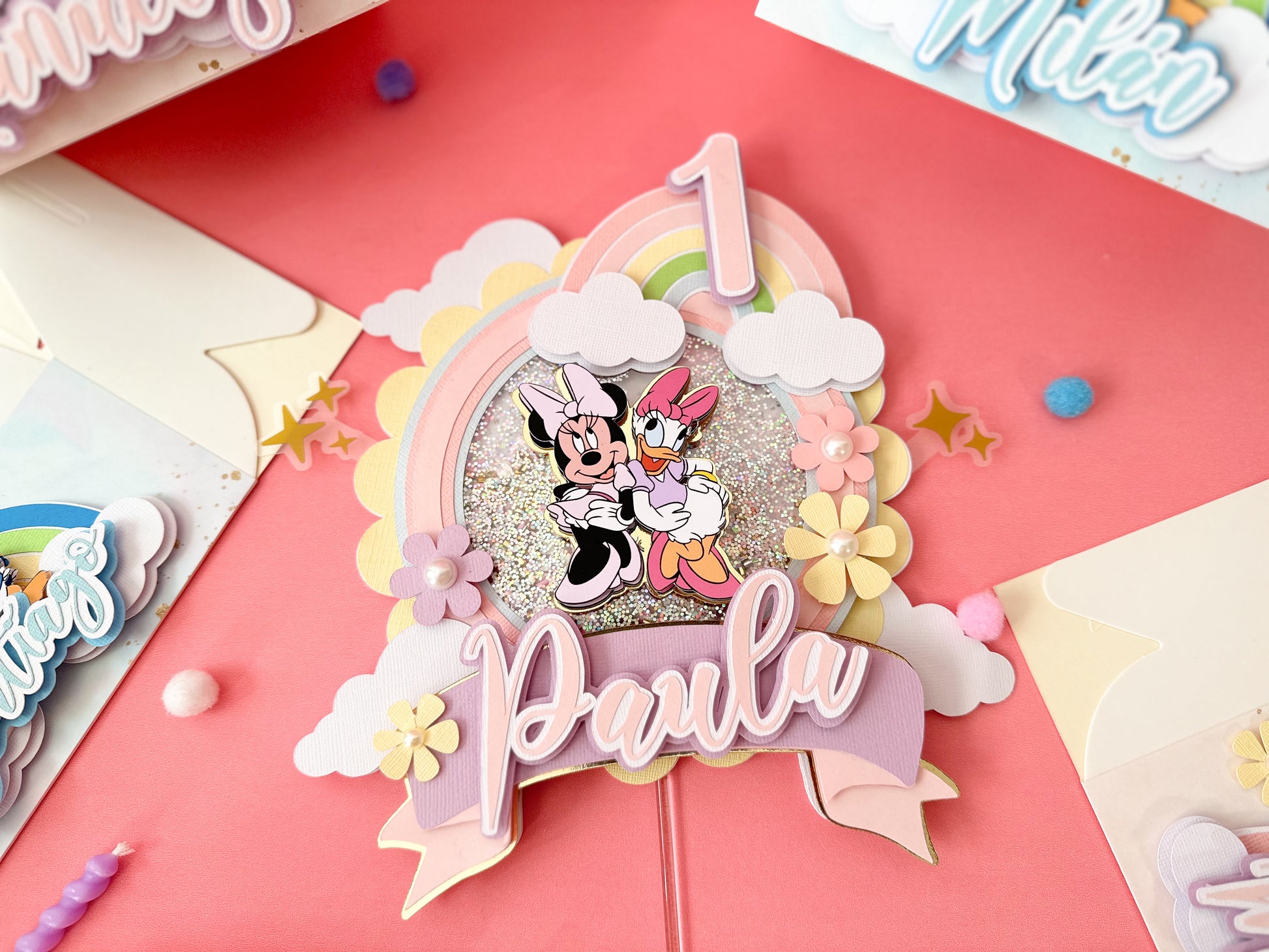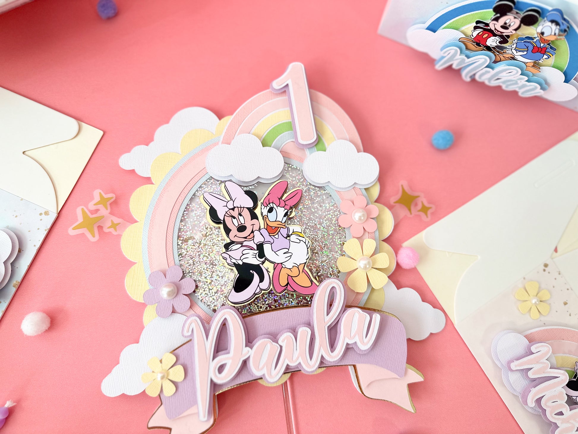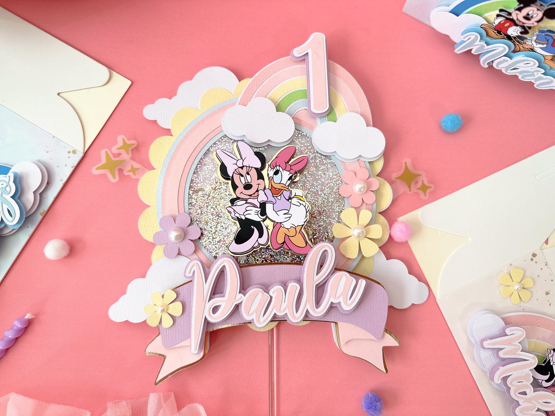 This listing is for a Minnie and Daisy cake topper. The topper is made with premium cardstock and handmade with love.