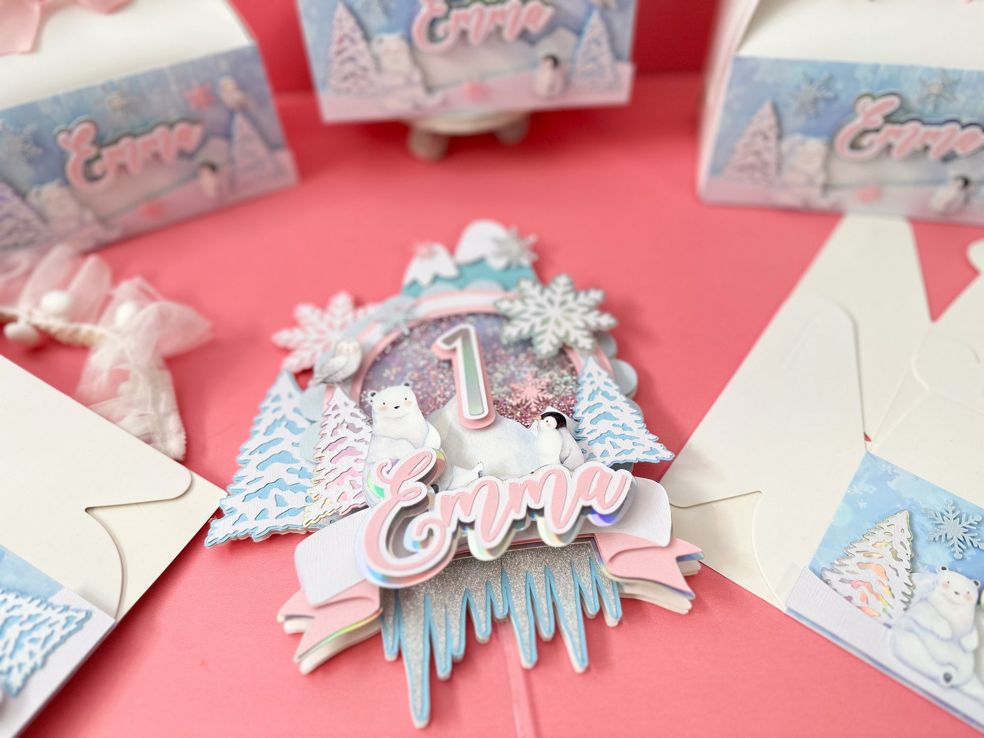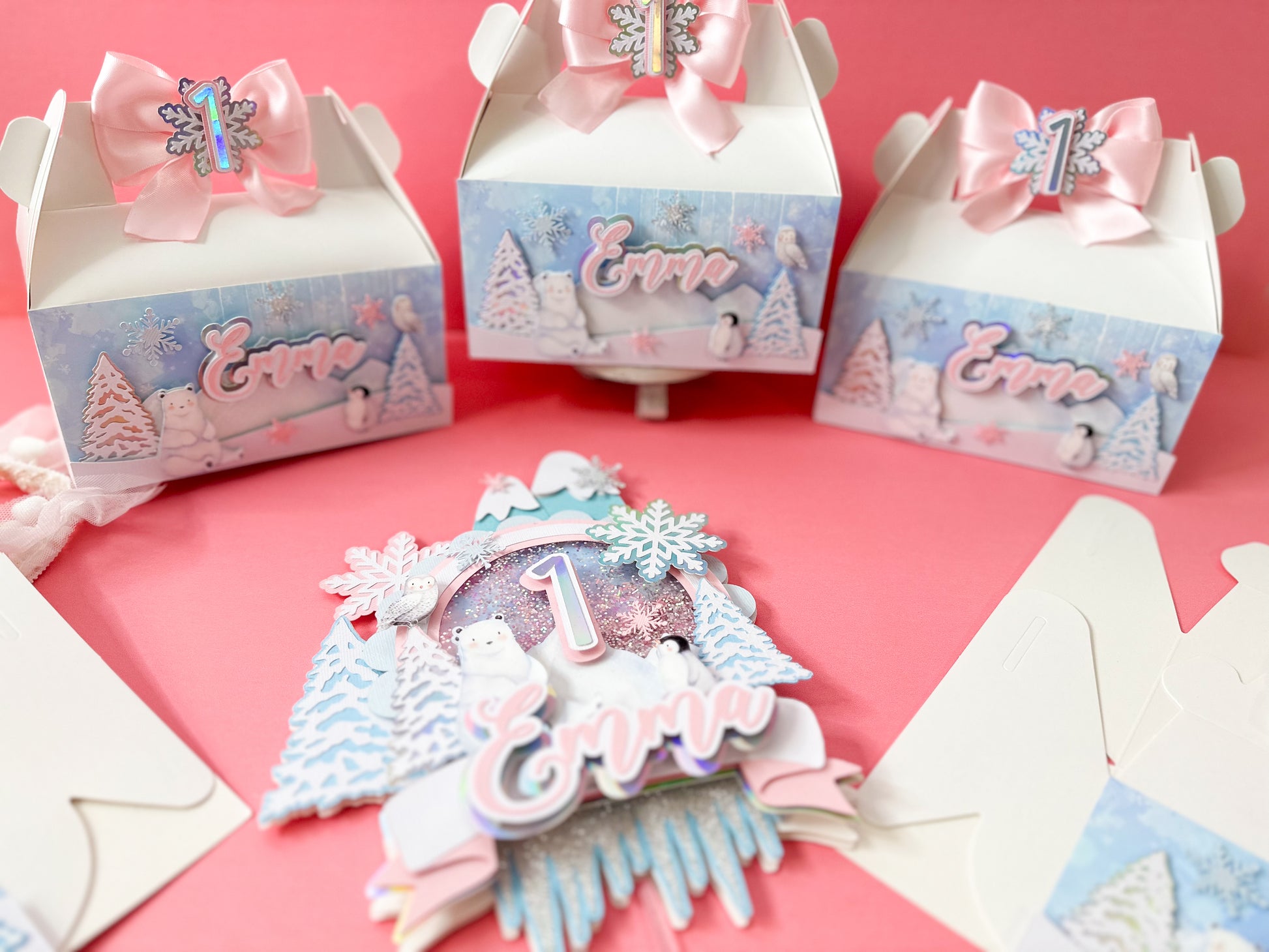 This listing is for a shaker cake topper Winter Onederland.