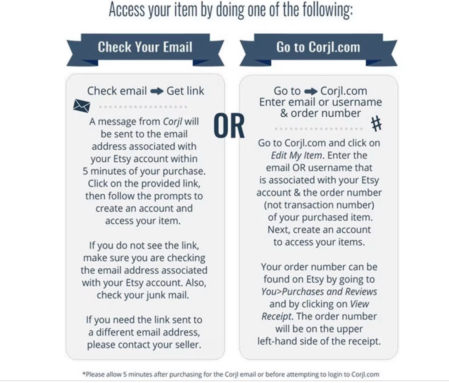 After you made your purchase, you’ll receive an email from corjl with you order. There you can edit it and print it.