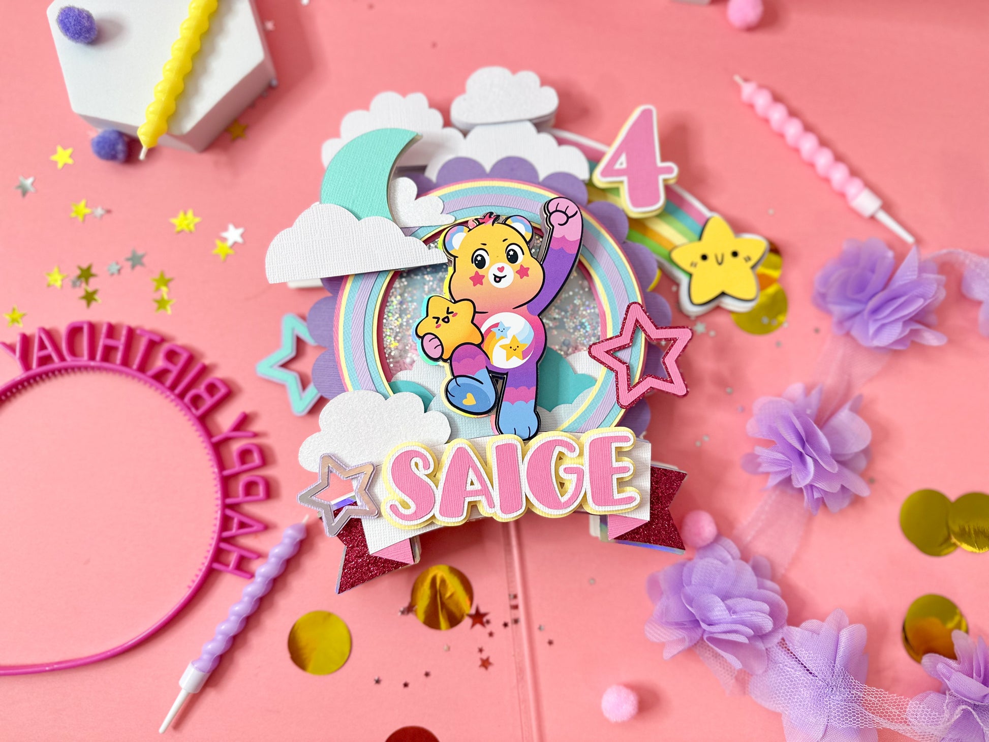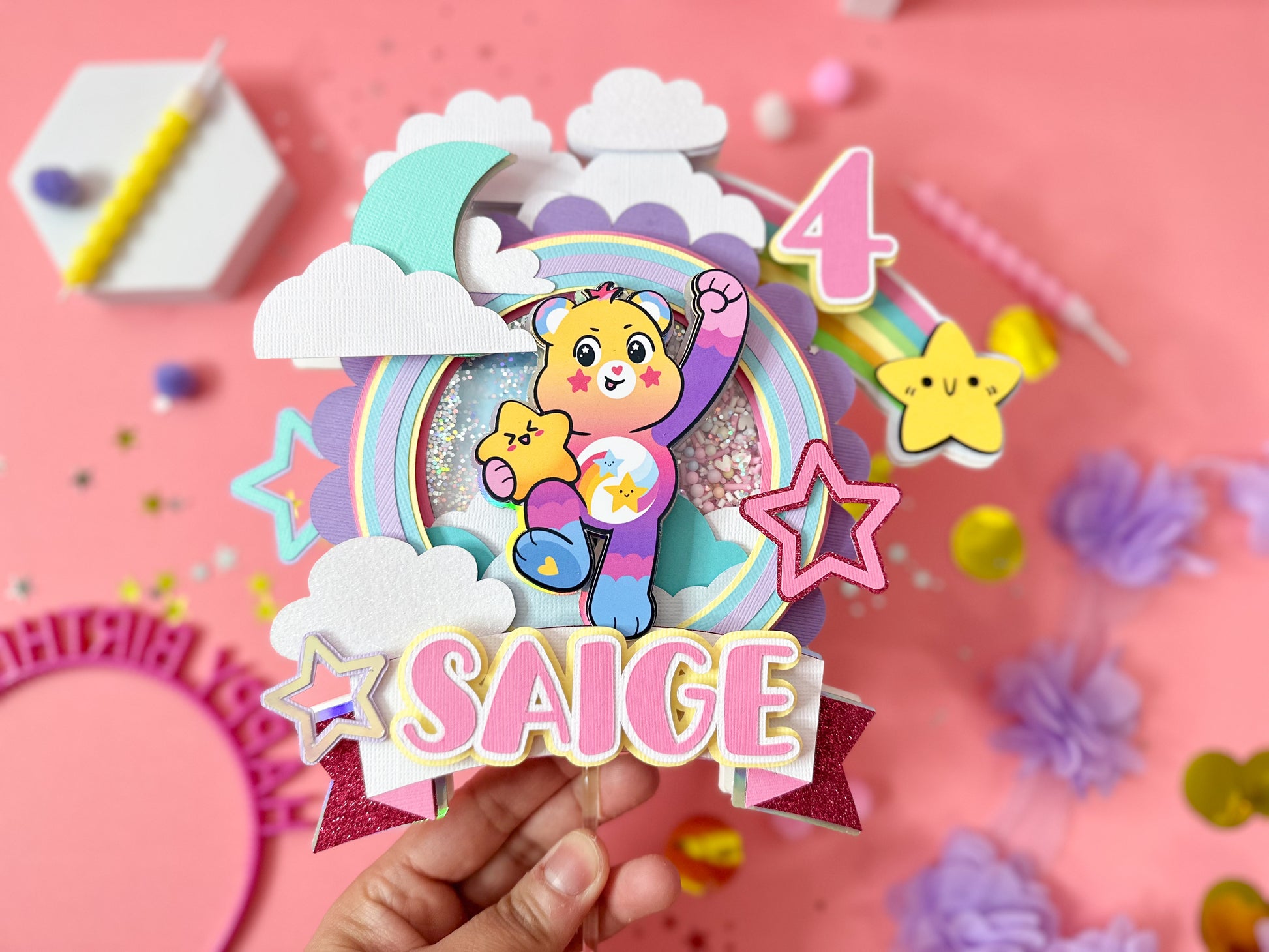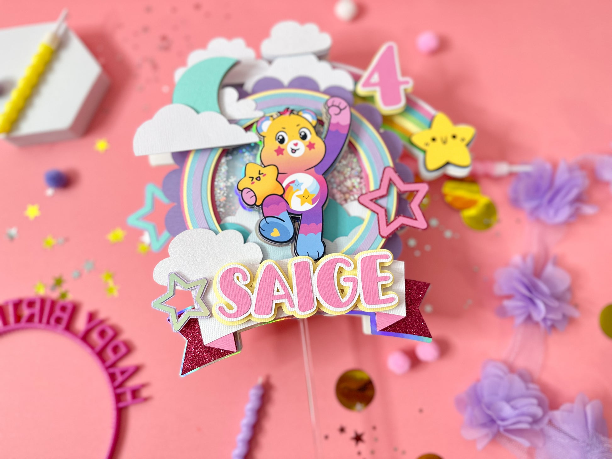 Dare to care bear topper | Care bear cake topper | party decor | cute bear party idea | shaker cake topper |