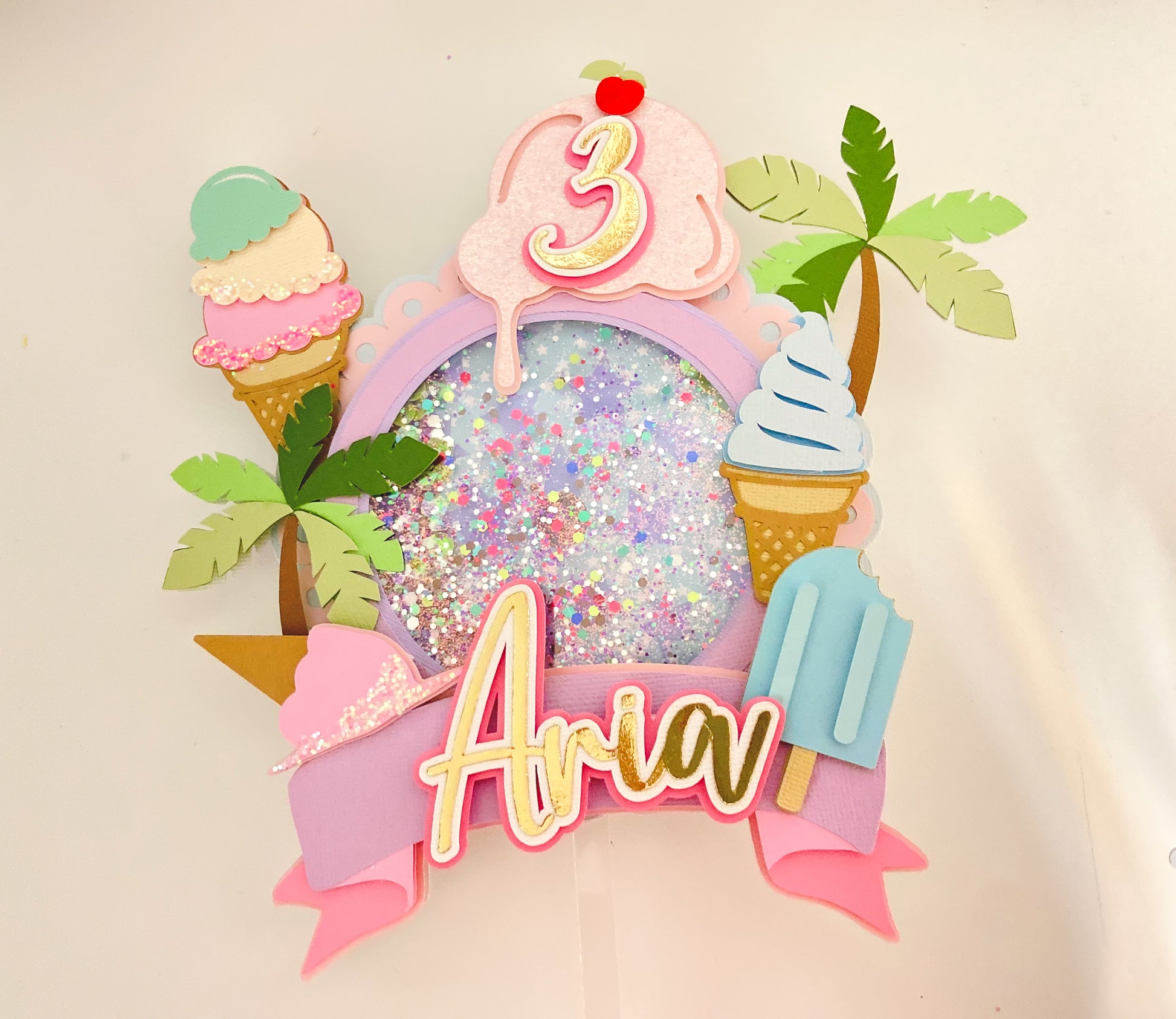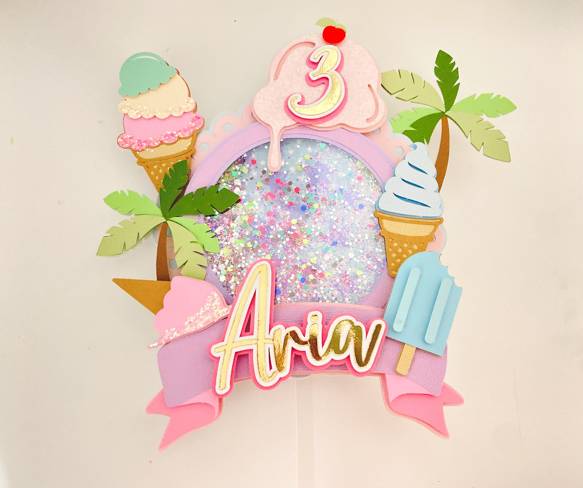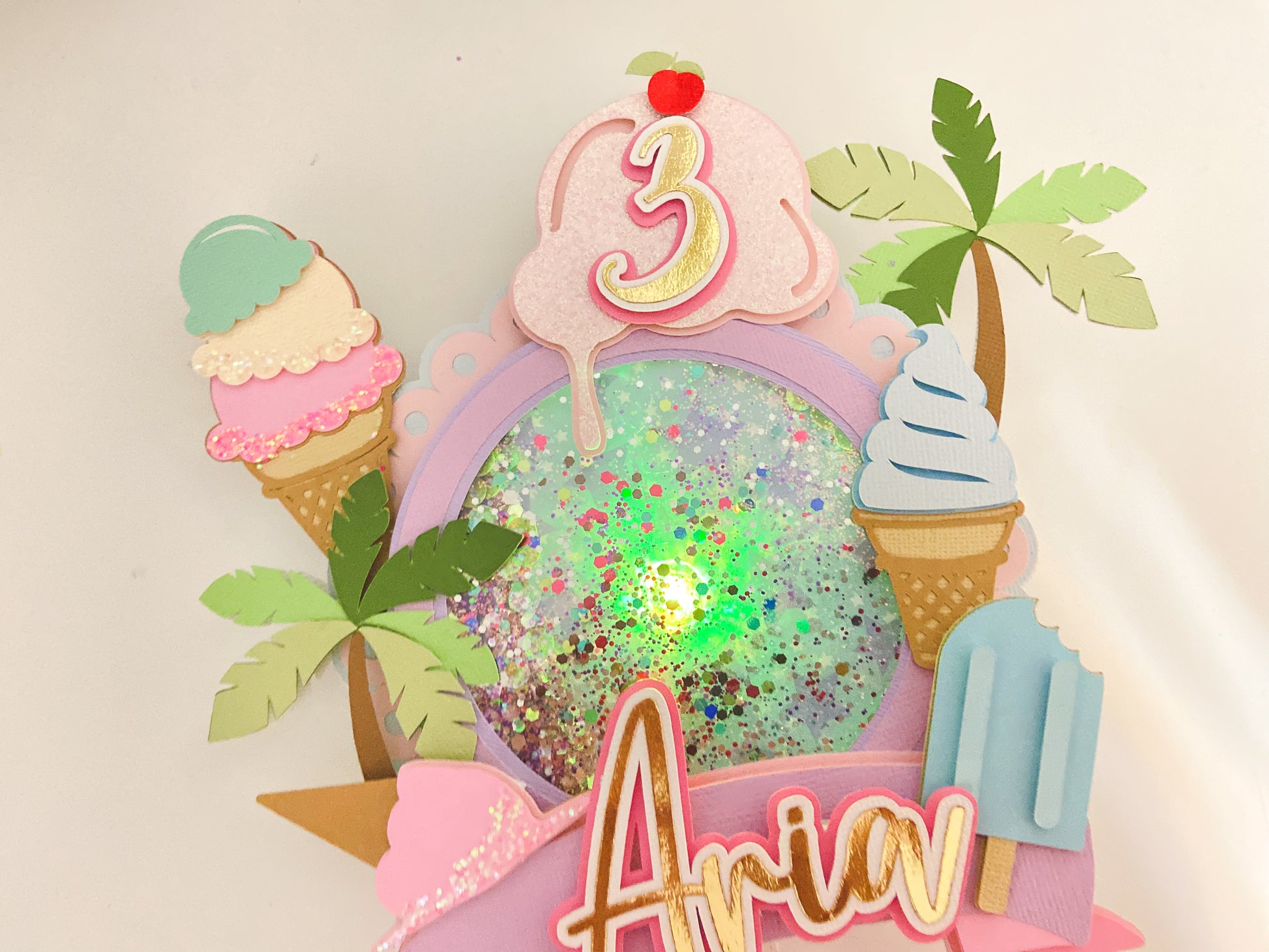 Here's the scoop cake topper | Ice cream themed birthday | Summer fun party | Ice cream party decor | light up topper | shaker cake topper