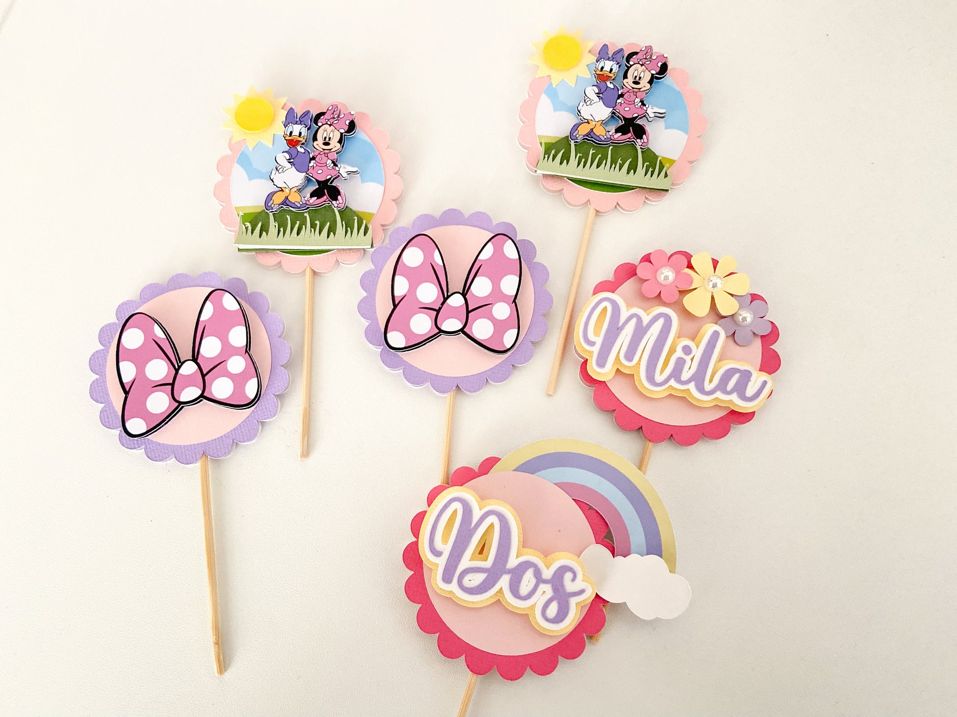 This listing is for a Minnie and Daisy cupcake toppers. Each topper is made with premium cardstock and handmade with love.