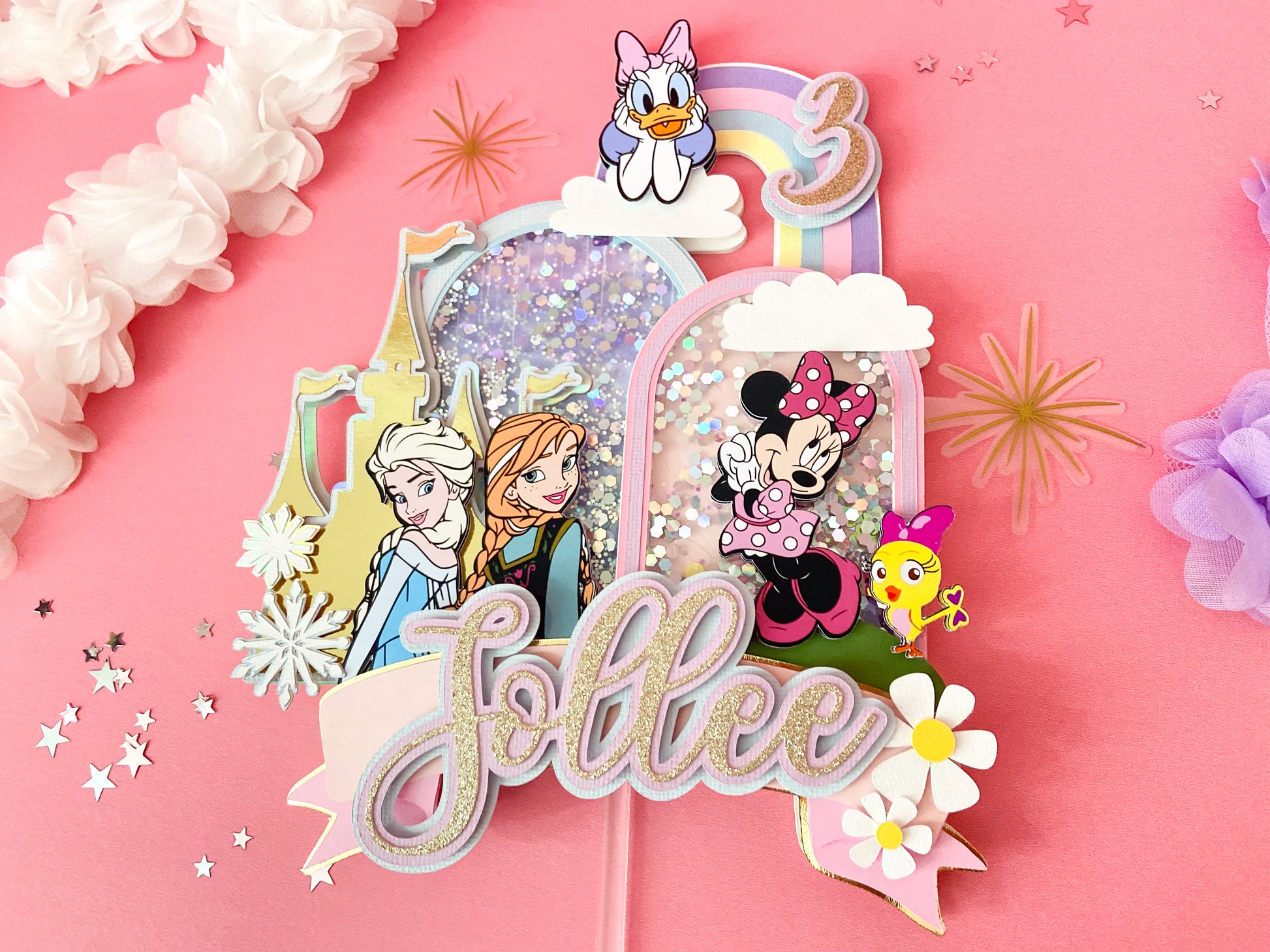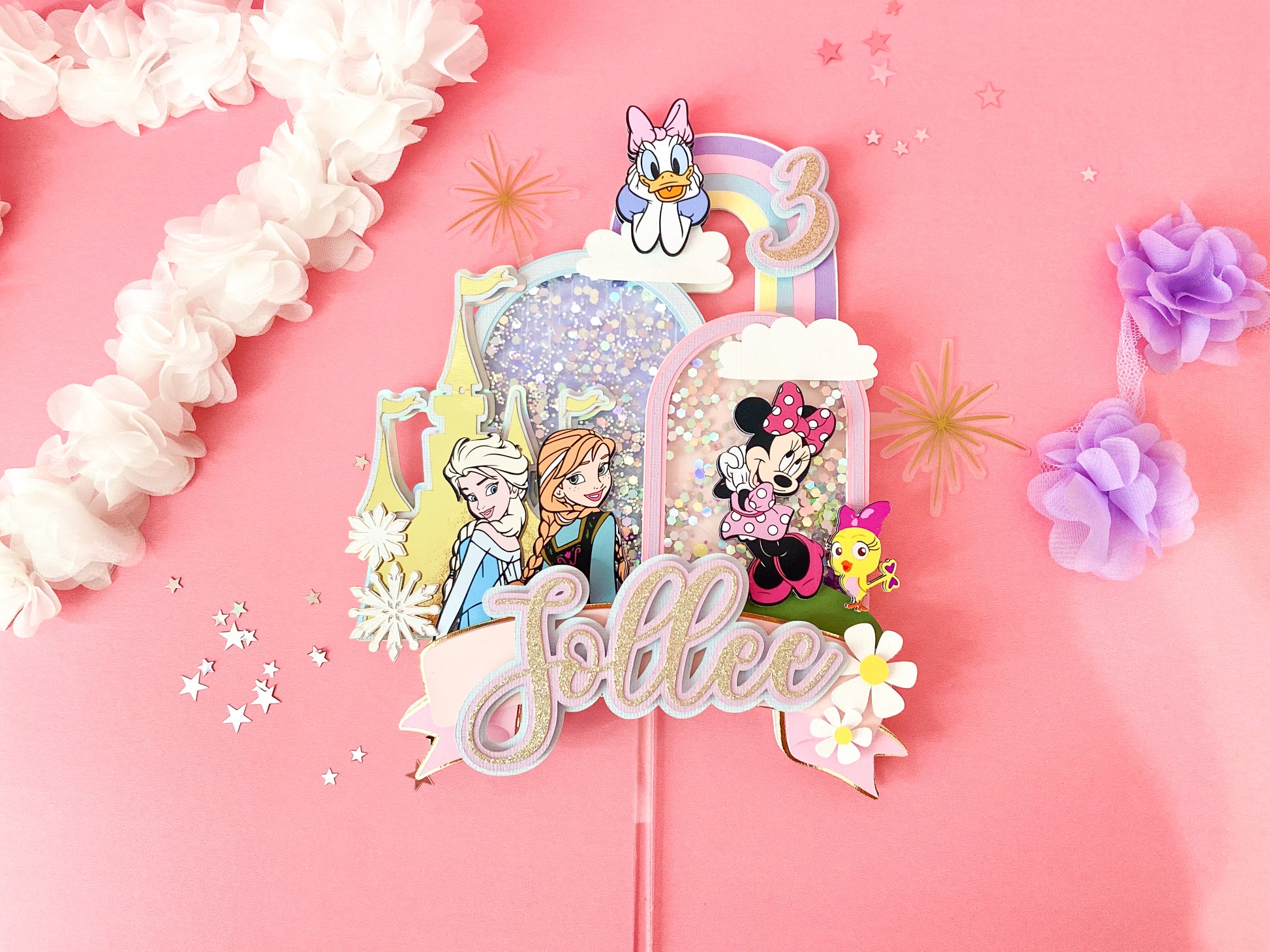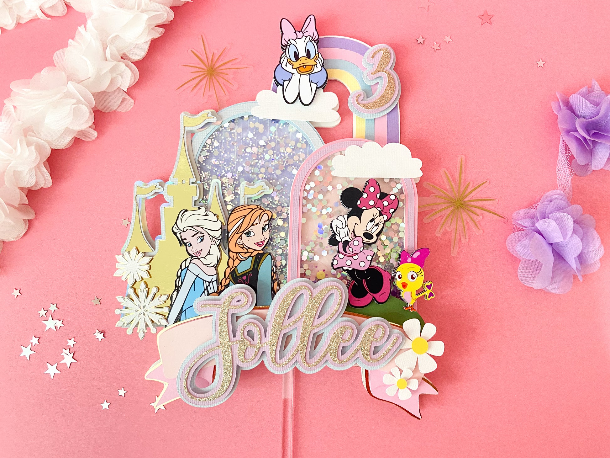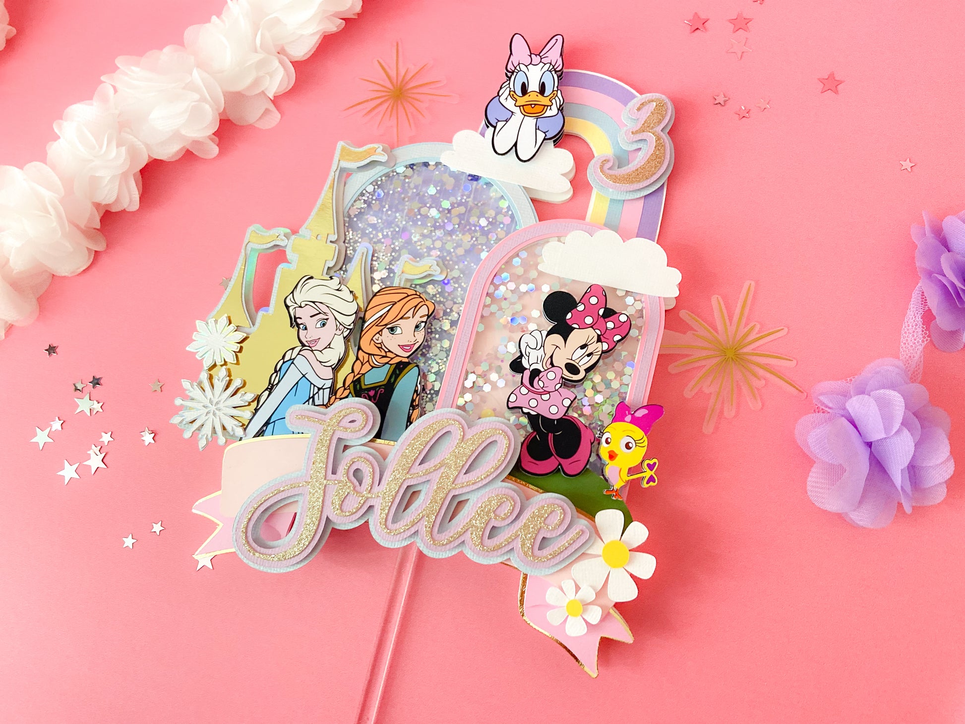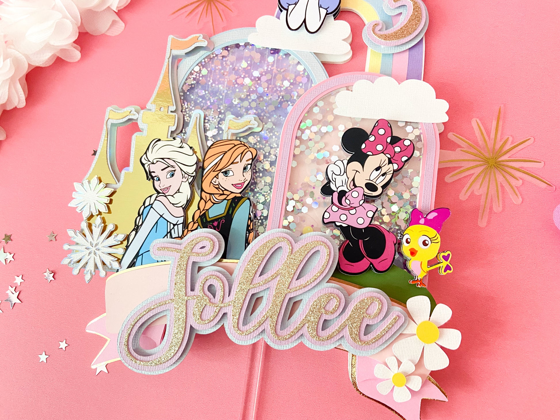Minnie and frozen custom topper | Shaker cake topper | Minnie Mouse party decor | Frozen birthday | Minnie cake topper | Elsa and Anna