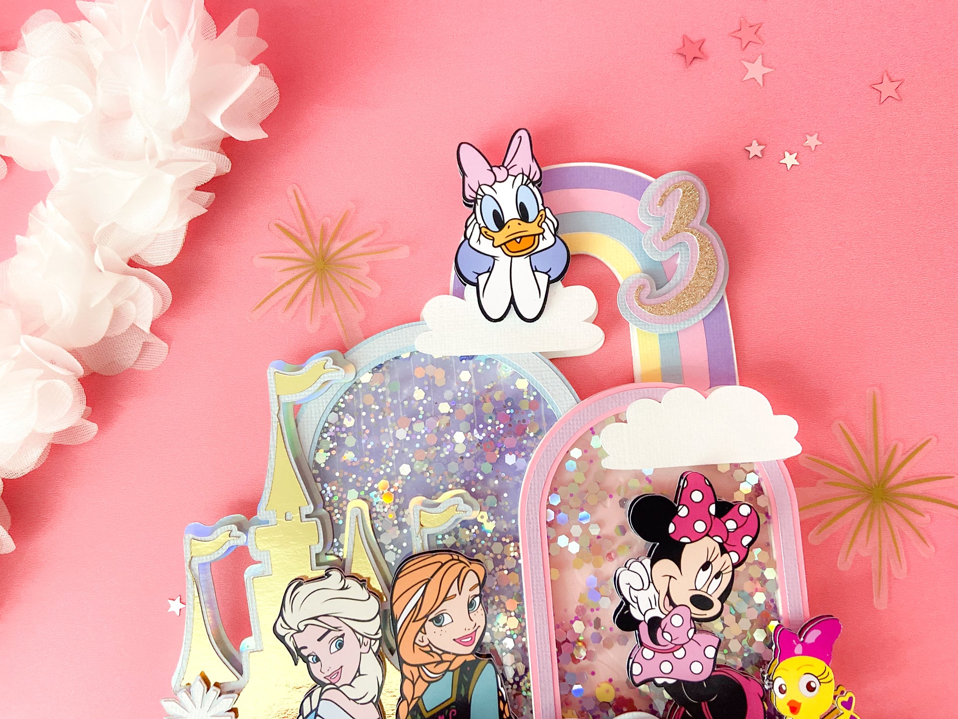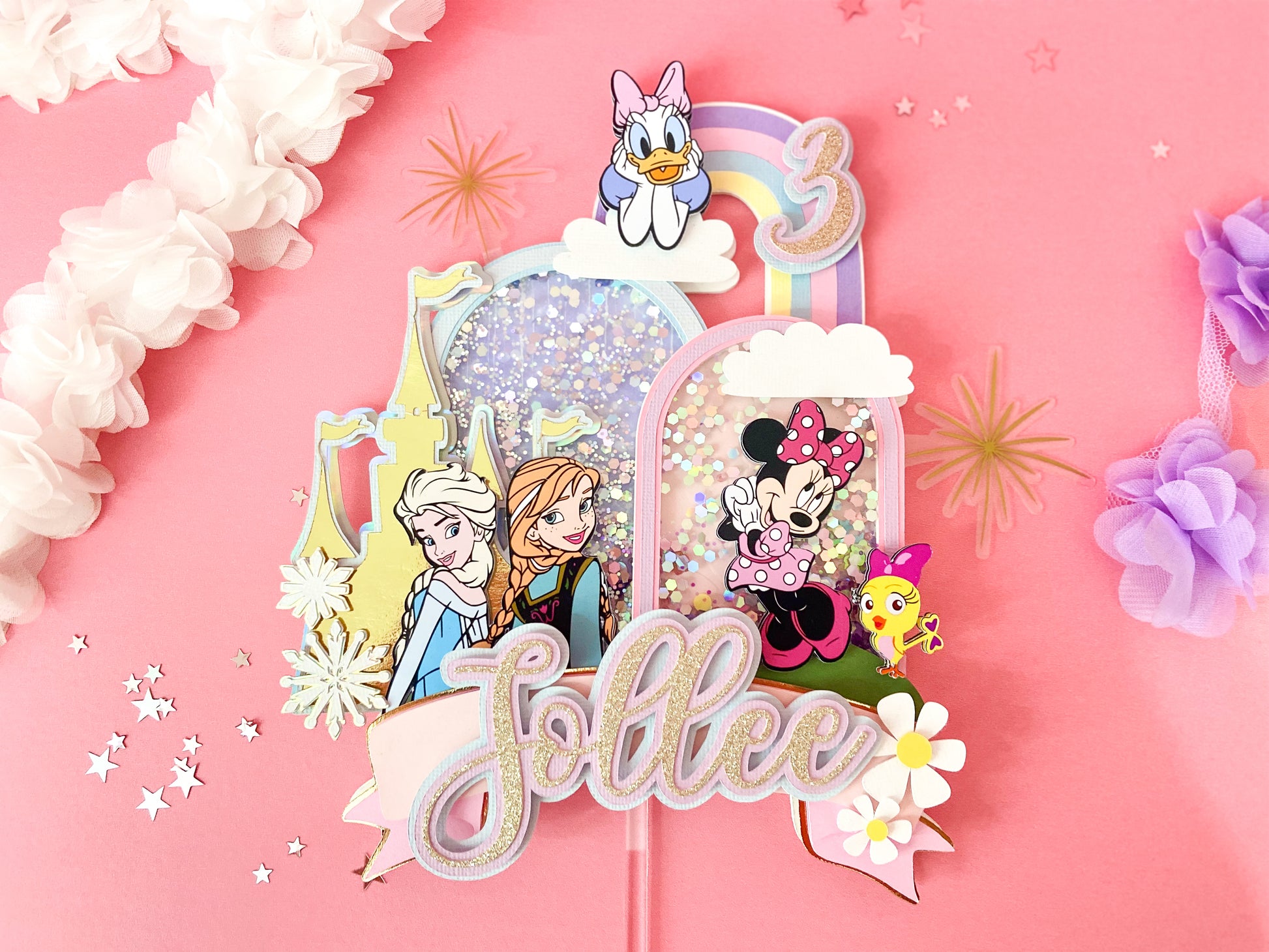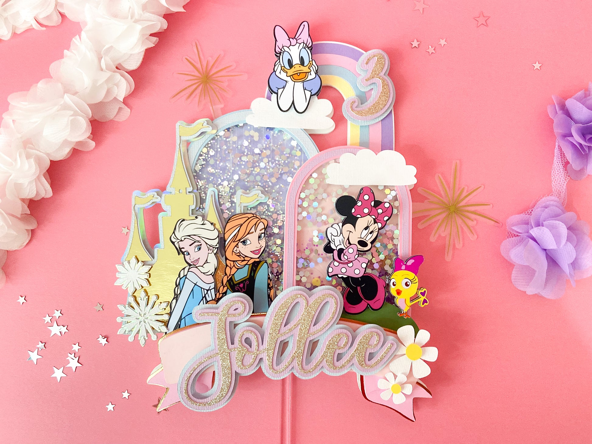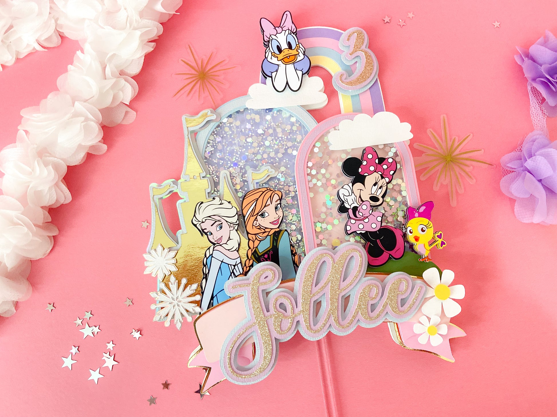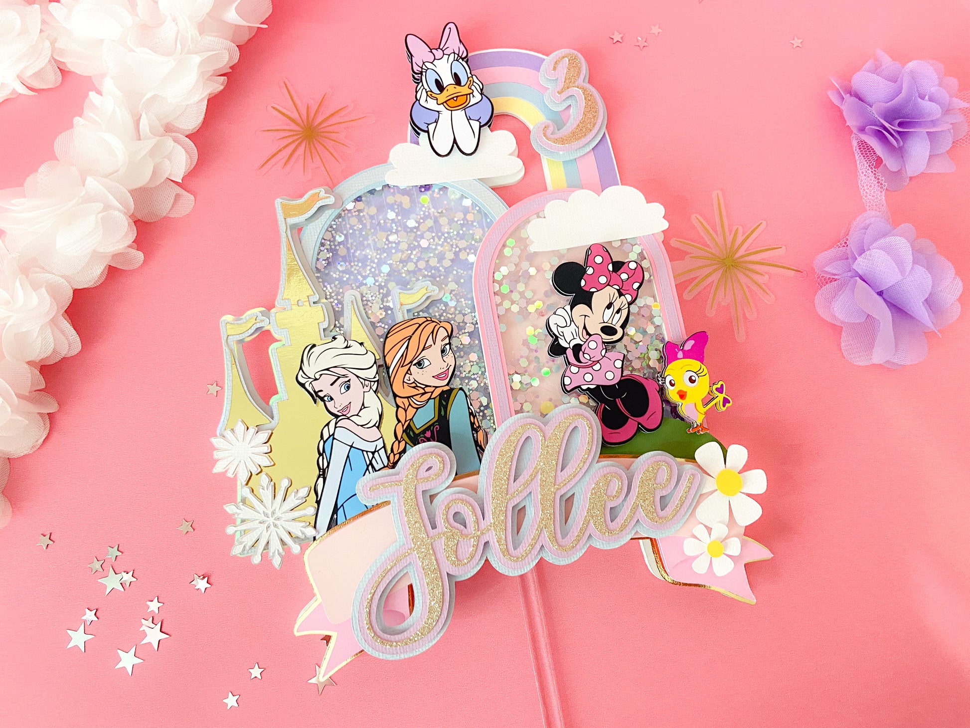 Minnie and frozen custom topper | Shaker cake topper | Minnie Mouse party decor | Frozen birthday | Minnie cake topper | Elsa and Anna